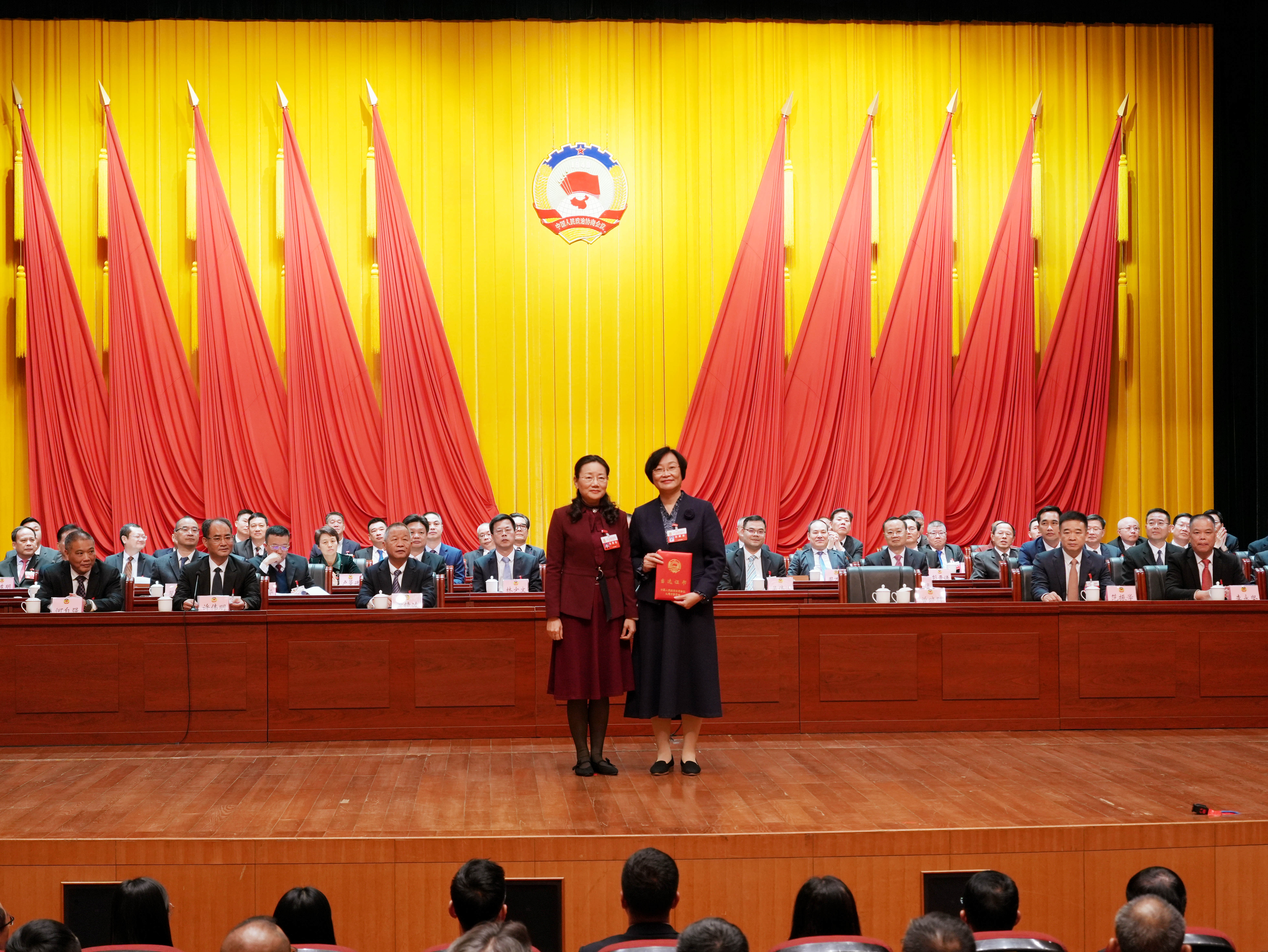 大会执行主席曾晓晖、黄镜波、范振学、许伟明、李永坚、何自强、林国全、张壮义、钟雪欢在主席台就座。市委常委、统战部部长、市政协党组副书记吴伟达,市委常委、组织部部长翟伟锋出席会议并在主席台就座。